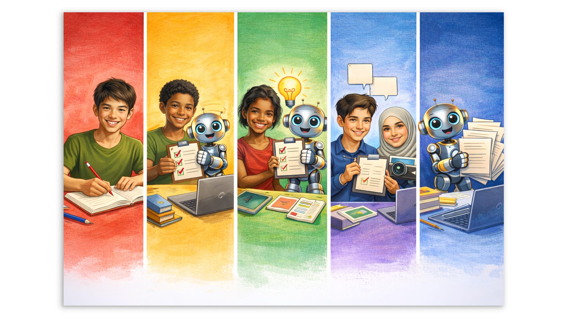 Embedded AI literacy happens through classroom dialogue and intentionally designed learning experiences, where AI shows up in ways that actually enhance learning. Students learn by doing. They build meaningful habits with AI when lessons use it to strengthen thinking, not replace it. Reflection helps students notice how the process actually flowed for them: where AI supported their growth, where it got in the way, and what they want to adjust next time. Over time, that cycle of practice and reflection becomes a lifelong strategy that students can carry into adulthood.